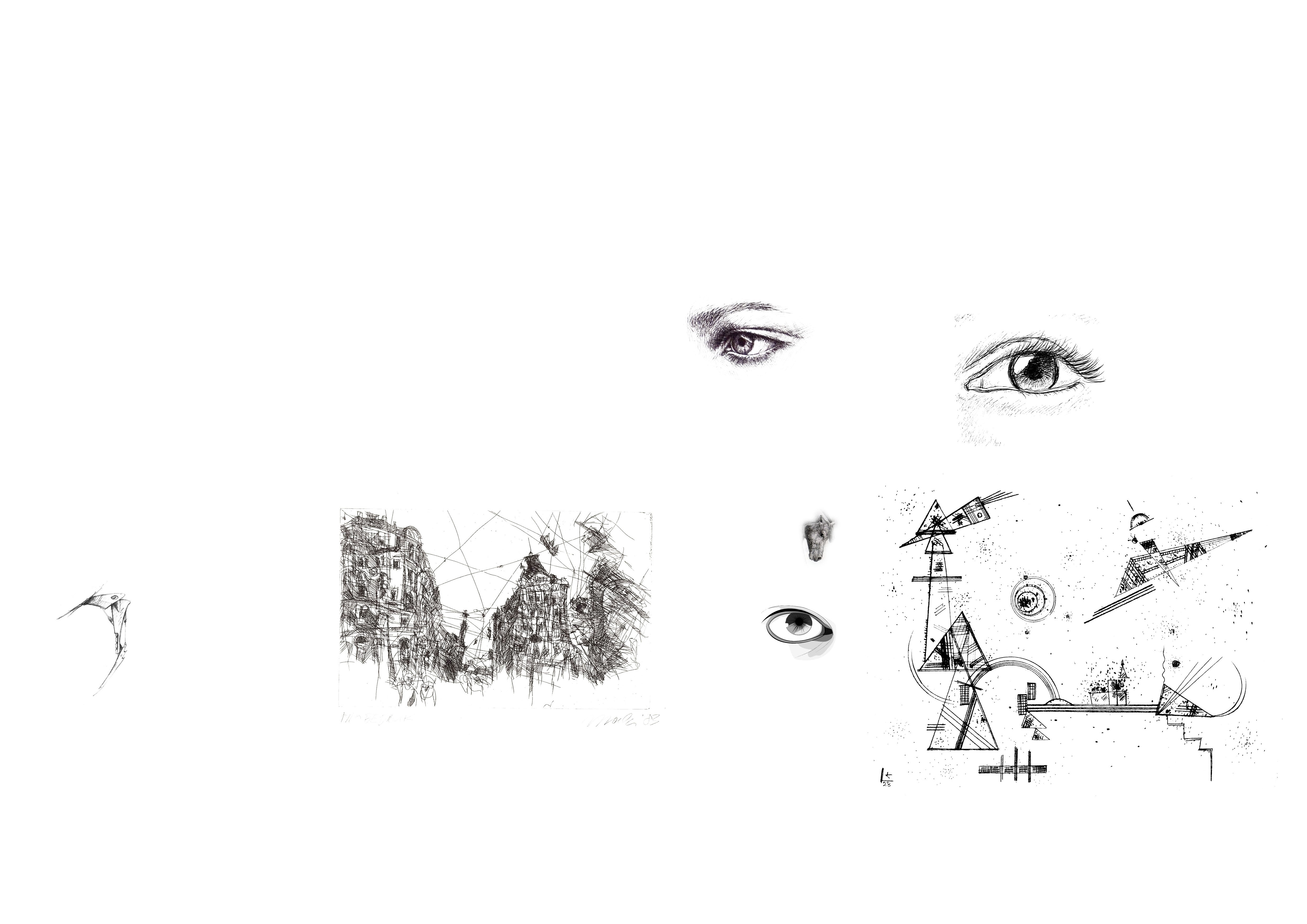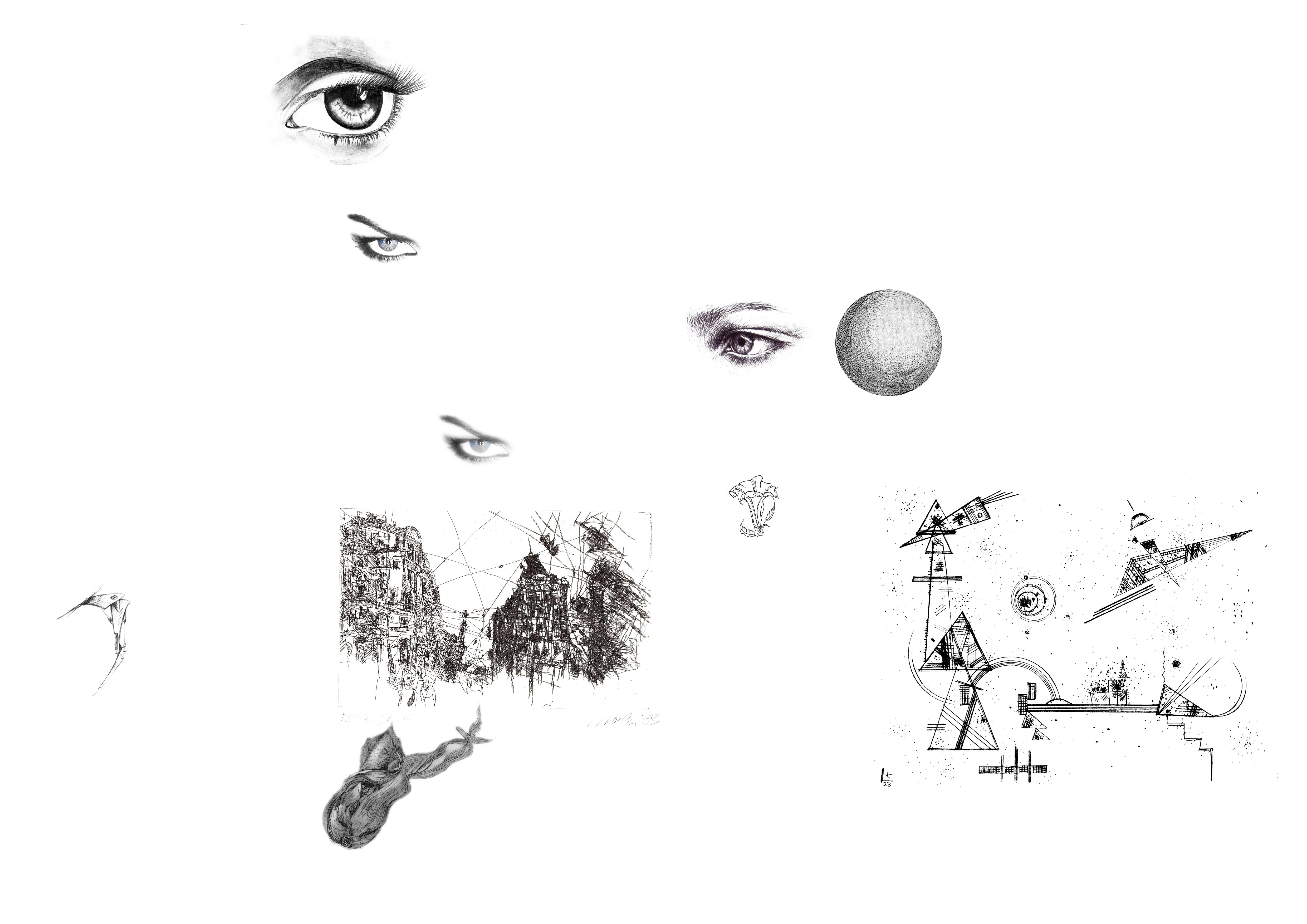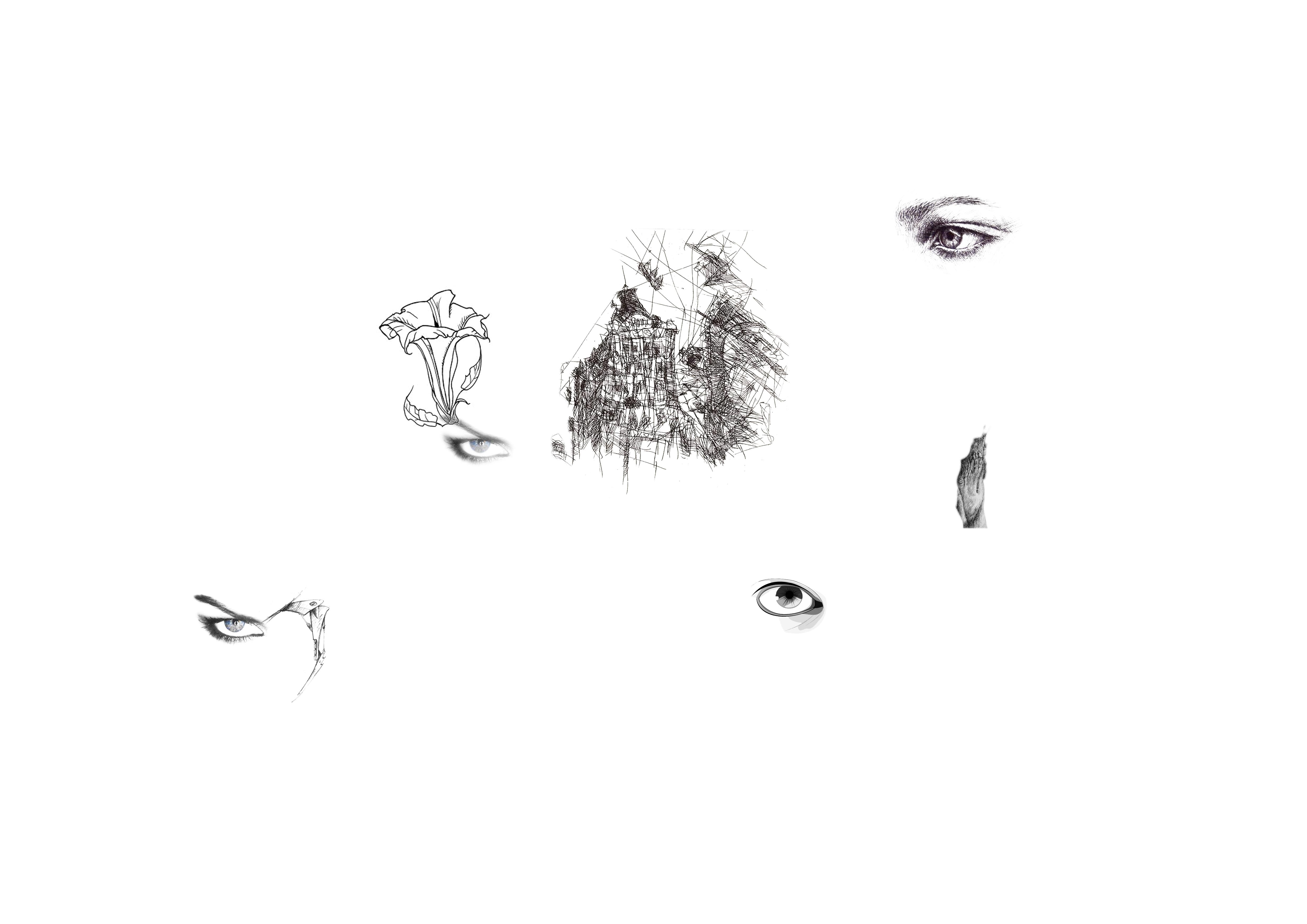 Auf den Bildern befinden sich verschiedene Bildelemente. Drucke die Seite aus und ergänze die Zeichnungen so, dass der Übergang vom Gedruckten zum gezeichneten möglichst unsichtbar ist. LAss dich treiben, folge deinem Bleistift, nimm dir kein Gesamtbild vor. Ende, wenn dir dein Gefühl es sagt