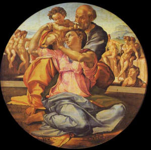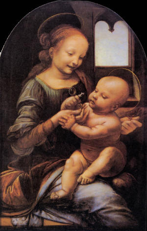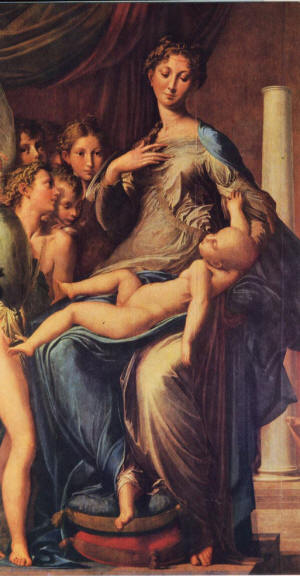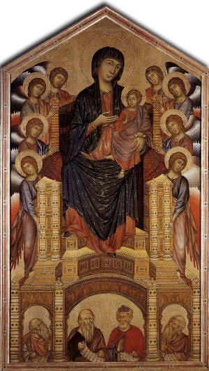 Beschreibe die gezeigten Madonnadarstellungen und untersuche sie auf Veränderungen bezüglich des Menschenbildes und des Verhältnisses von Diesseits und Jenseits. Welche semantischen und syntaktischen Faktoren belegen dies?
